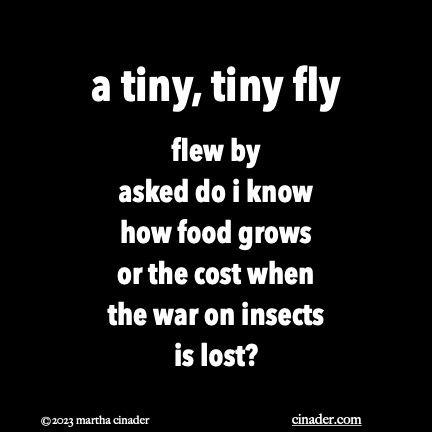 a tiny, tiny fly flew by asked do i know how food grows or the cost when the war on insects is lost?