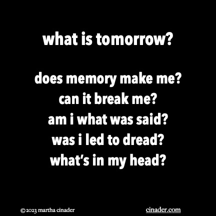 does memory make me? can it break me? am i what was said? was i led to dread? what’s in my head?